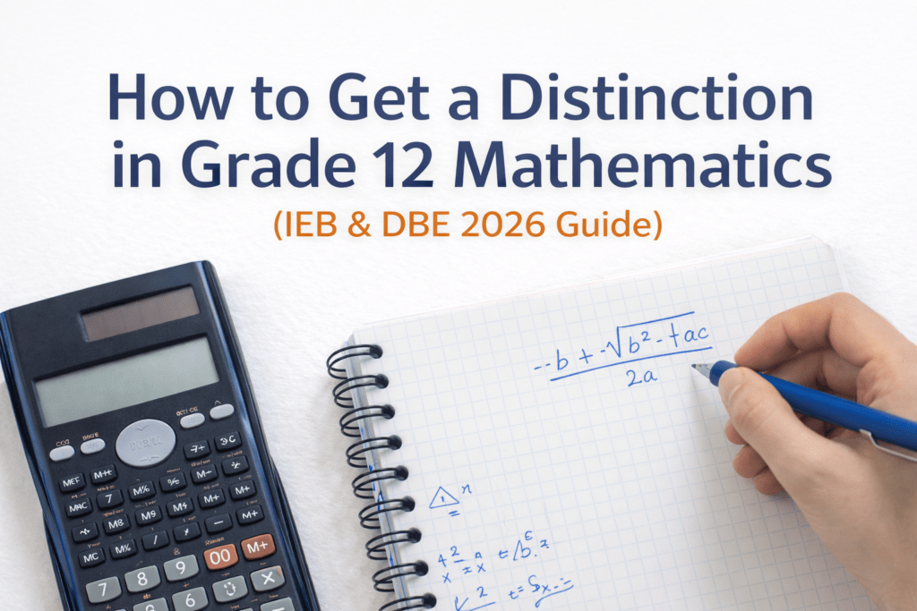 Getting a distinction in Grade 12 Mathematics (75%+ for DBE and typically 80%+ for IEB schools) is not about being naturally gifted at maths. It’s about understanding exam structure, mastering high-weight topics, and practising strategically.